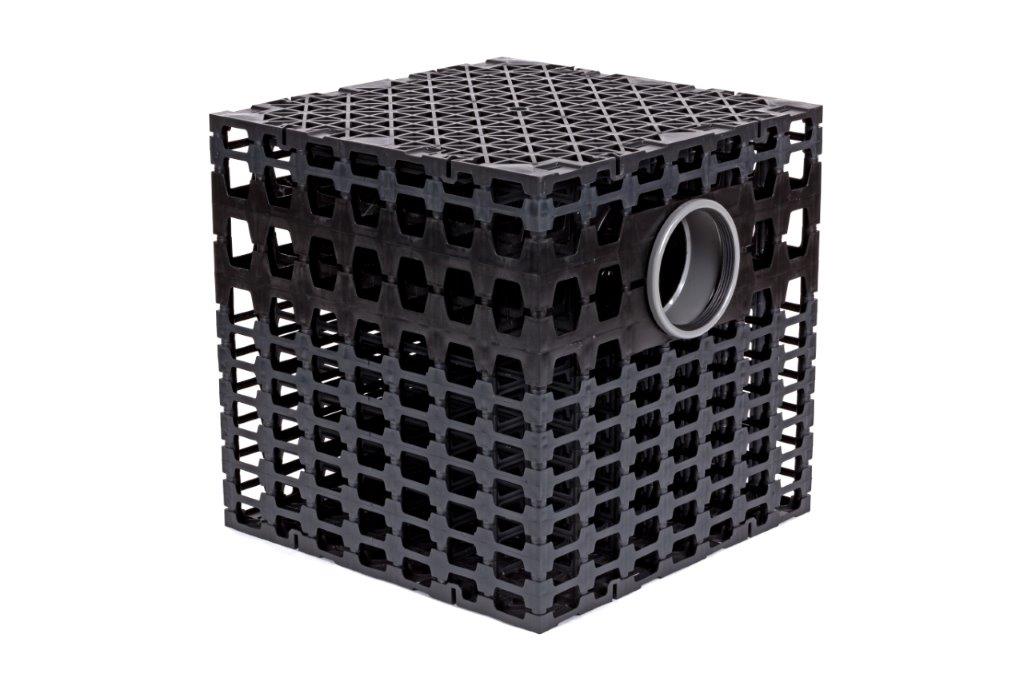 Dit aansluitkrat van 216 liter kan gebruikt worden om de regenwaterbuis te koppelen aan de infiltratiekratten. De kratten zijn voorzien van 2 gaten van 175 mm. Met behulp van de aansluiting adapter wordt een aanluiting naar 160 mm gemaakt. Afhankelijk van de aanvoerleiding kan het nodig zijn om met verlopen te werken. Wij adviseren om voor aanschaf een capaciteitsbepaling te doen zodat er voldoende infiltratievolume is.