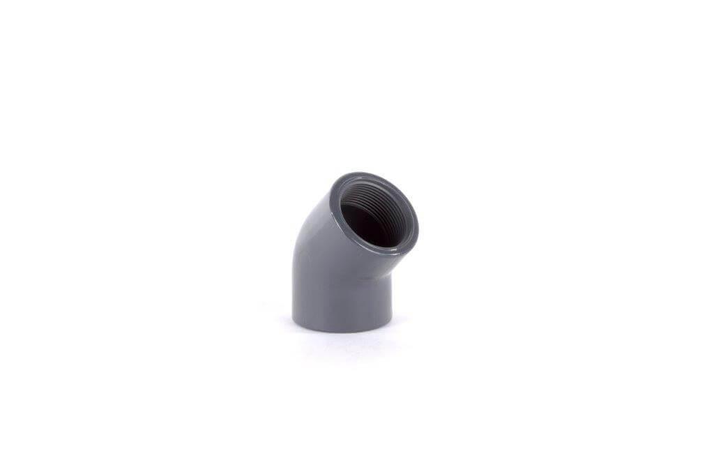 PVC knie van 45 graden welke aan beide zijden is voorzien van een 4″ binnendraad. De 45 graden bocht met binnendraad voldoet aan drukklasse PN16.