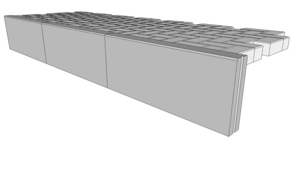 Betonnen opsluitband voor het afwerken en opsluiten van een bestrating of het overbruggen van een hoogteverschil. De grijze opsluitband is van handelskwaliteit en 10 cm breed en 40 cm hoog.